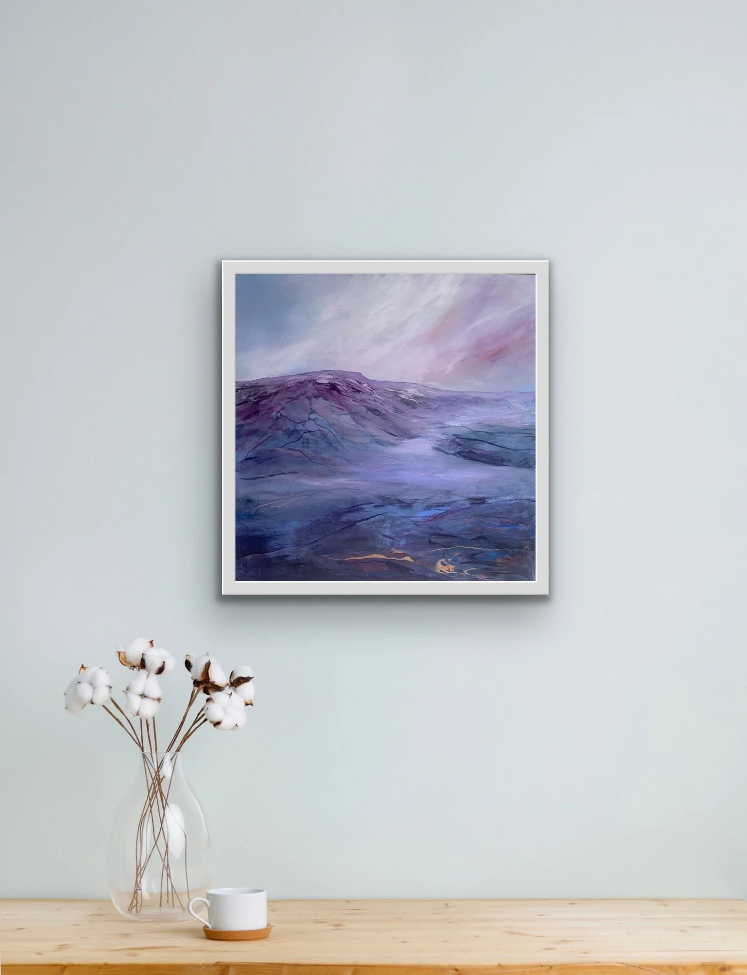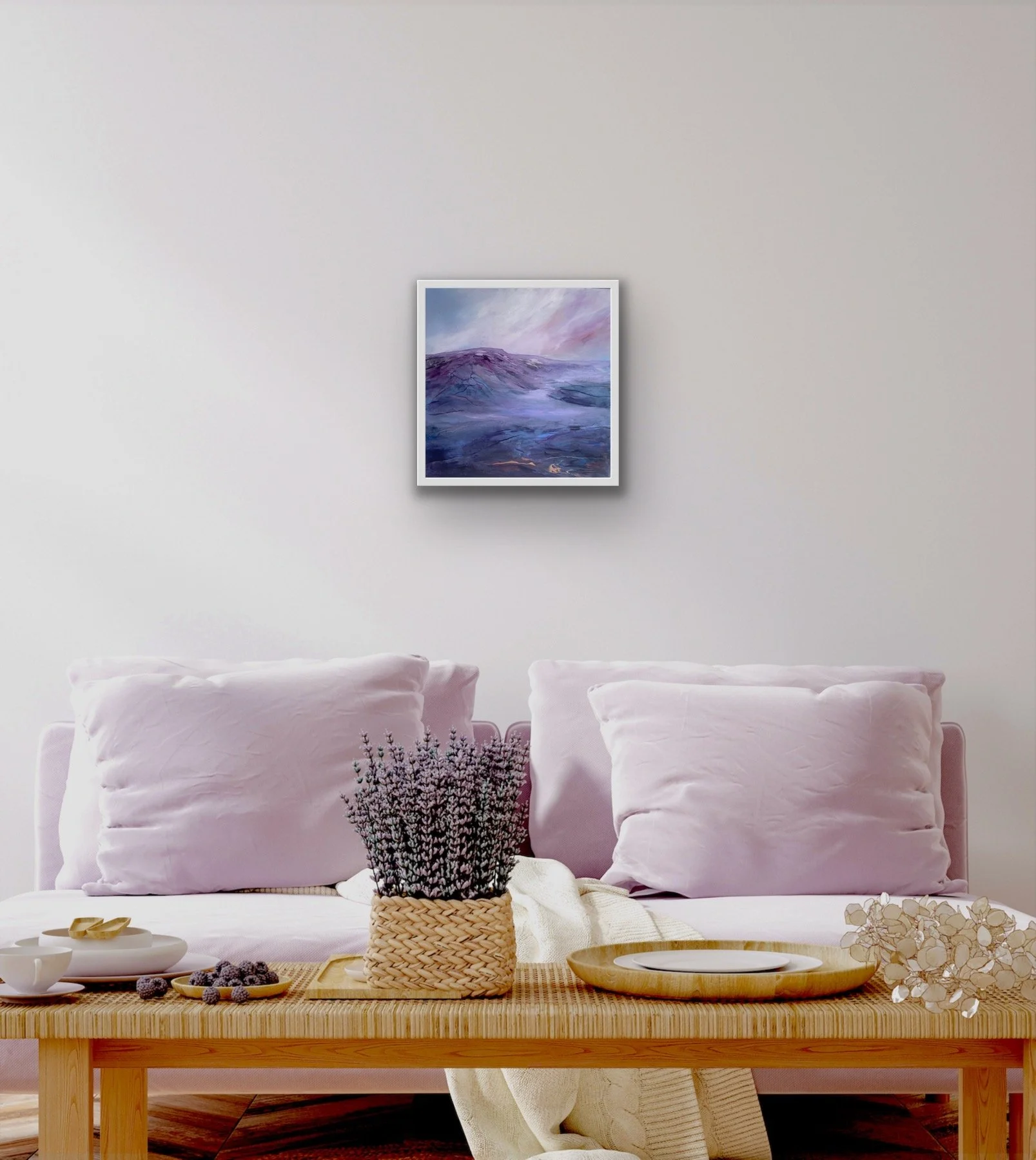 This coastal landscape inspired by the beautiful coastline of Lewis in the Outer Hebrides invites contemplation with its interplay of water and sky. Soft hues of blue, grey and turquoise blend seamlessly, reflecting the essence of the Hebrides. The textured foreground, with its delicate grasses, adds depth and movement, guiding the eye toward the distant hills that cradle the horizon. This artwork embodies a peaceful escape, making it a perfect addition to any space seeking a touch of calm and natural beauty.