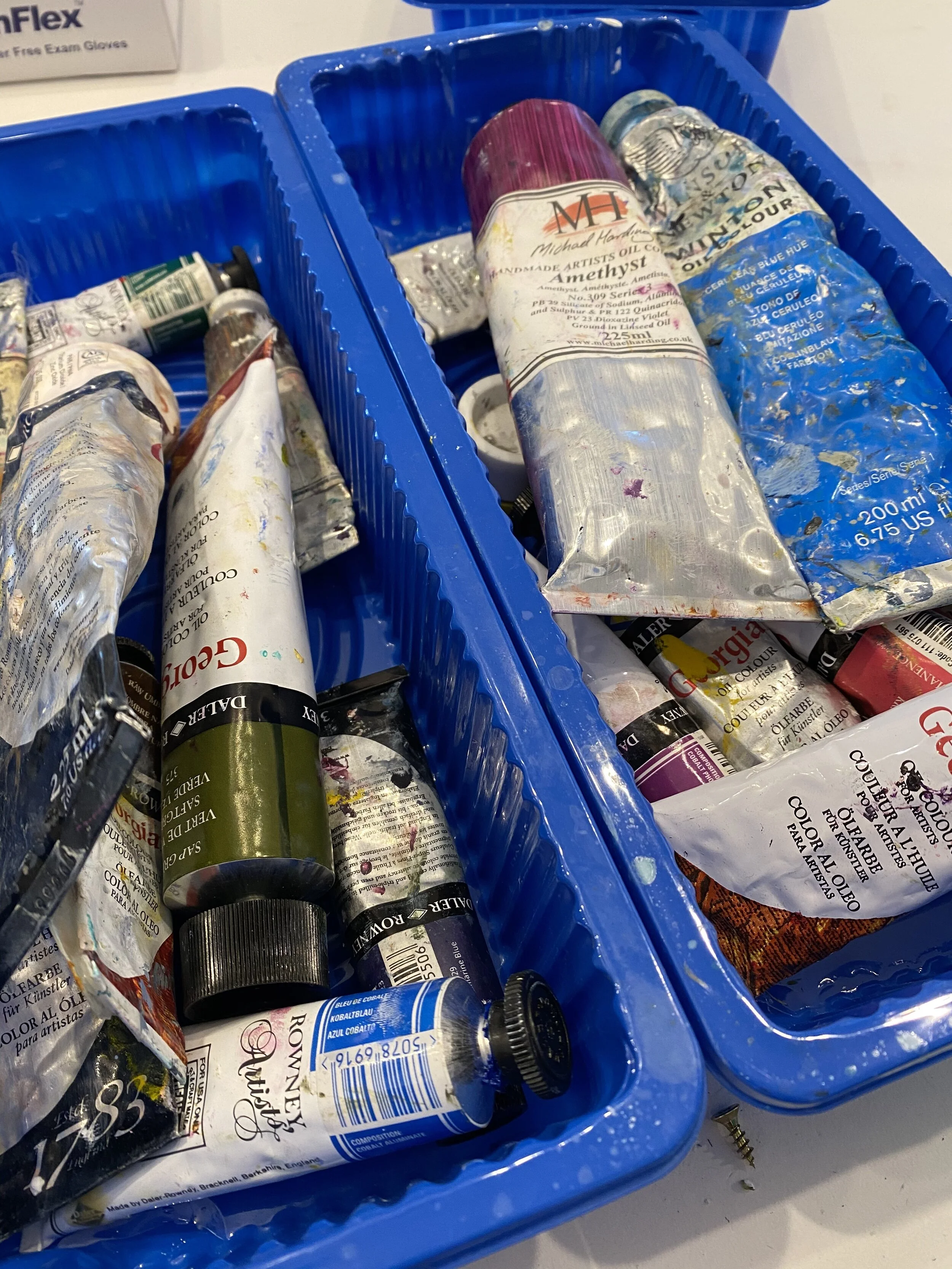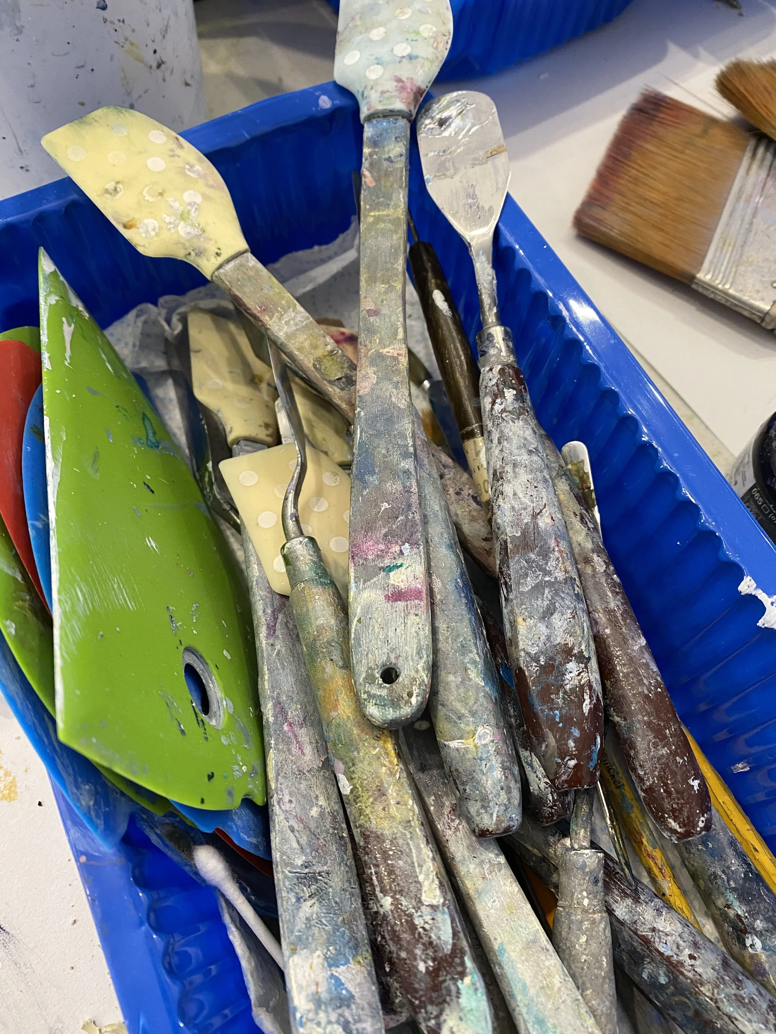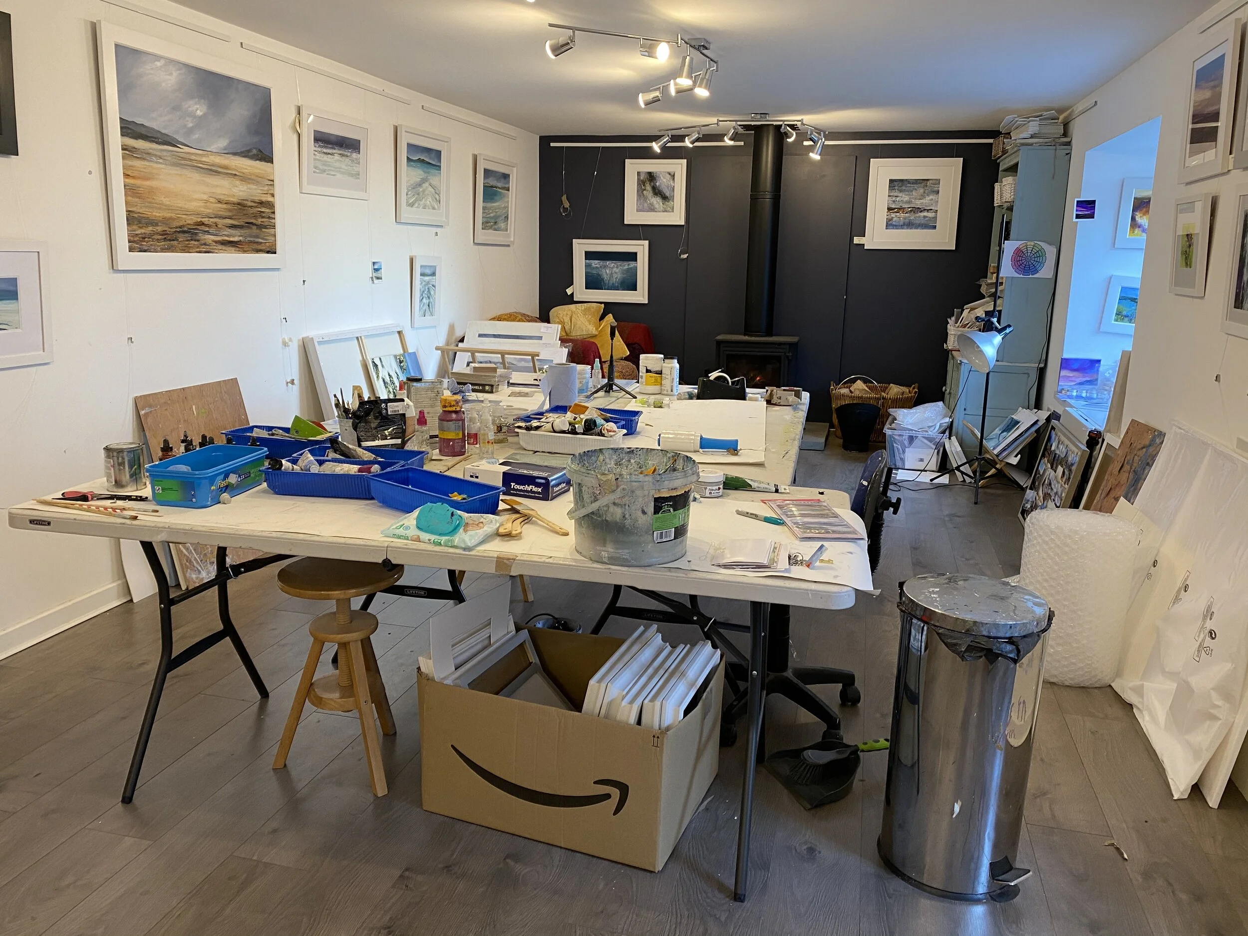 In The Studio 1 Mar Written By Jane McMillan Welcome to my studio! View fullsize Not too messy today View fullsize Acrylic inks, time to experiment View fullsize Cheap and cheerful brushes! View fullsize Favourite tools of the trade View fullsize Finishing Touches View fullsize How the oils usually look View fullsize Liquin to speed things along View fullsize Making the magic happen, different medias View fullsize Oil and Cold Wax View fullsize Sometimes it's got to be the hands View fullsize The Acrylics, great for speed painting! View fullsize The Oils Draws, never normally this tidy! View fullsize The work station! Jane McMillan https://www.janemcmillanart.com